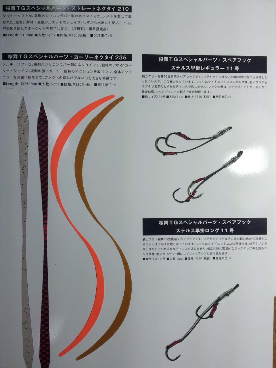 フックはシーハンター8号+がまかつ製11号、ネクタイ部はラバースカート+スモールネクタイ+ストレートネクタイとなっています。